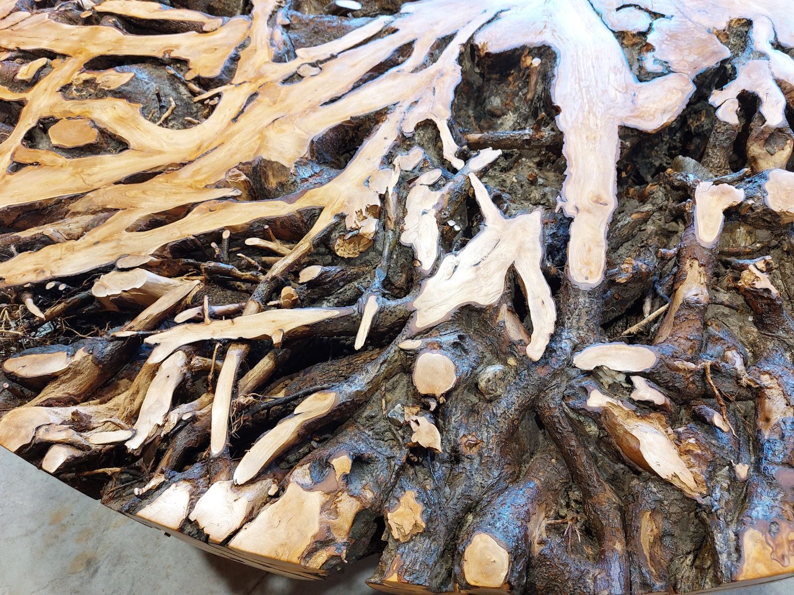 Einzigartiger Konferenz- Garten- Esstisch aus einem Wurzelstock einer alten Linde, gewachsen im Emmental.