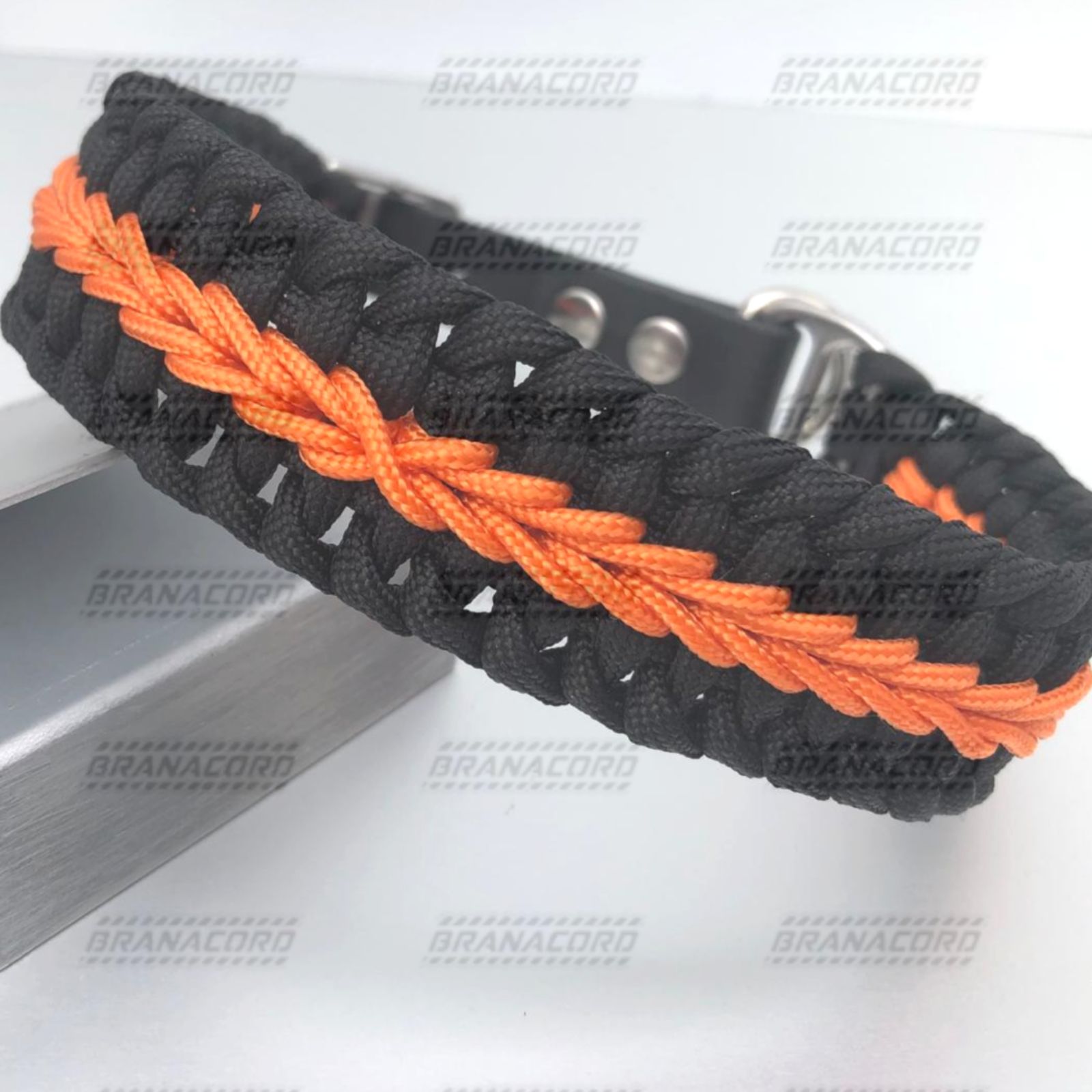 Dieses handgefertigte Paracord-Halsband vereint Stil und Komfort. Mit 3 cm Breite, aber nur 7 mm dünn, ist es besonders leicht und angenehm zu tragen – ideal für Hunde, die ein schlankes, aber robustes Halsband bevorzugen.