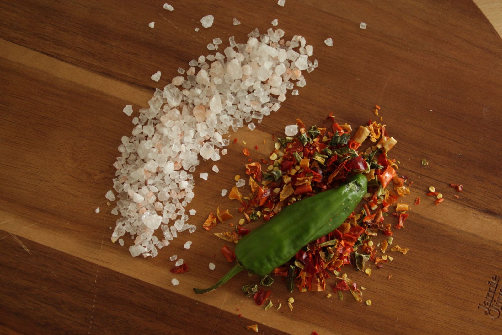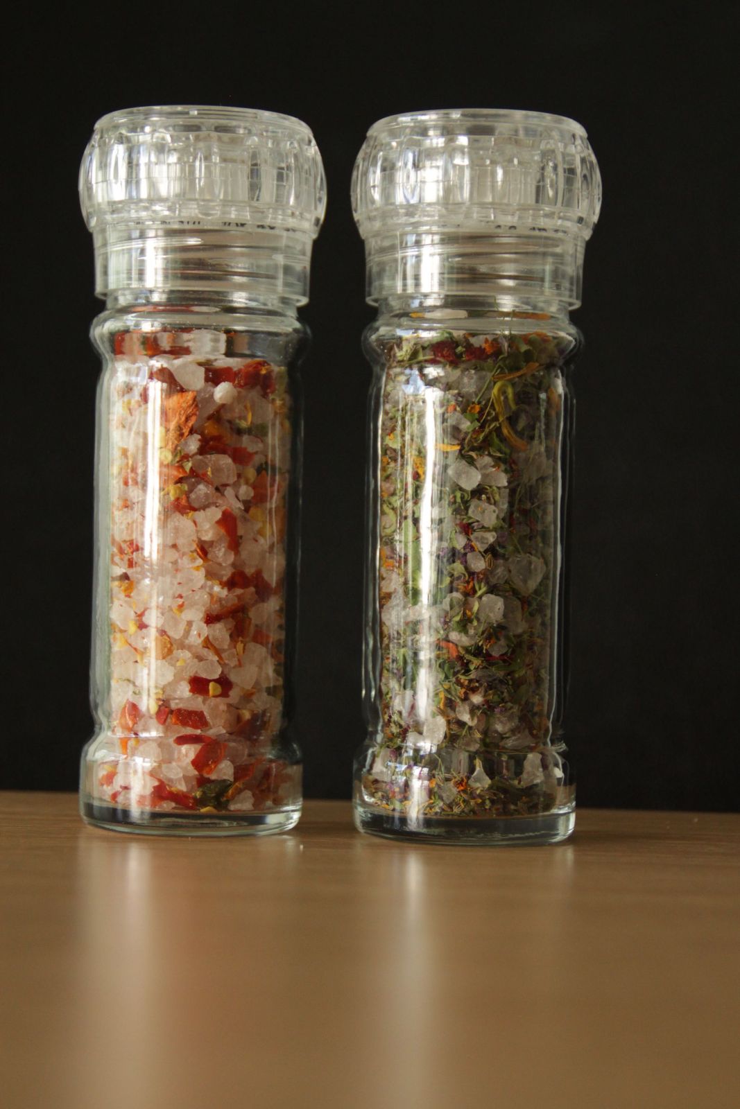 In der Mühle mit grobem Salz, im Glas mit feinem Salz.