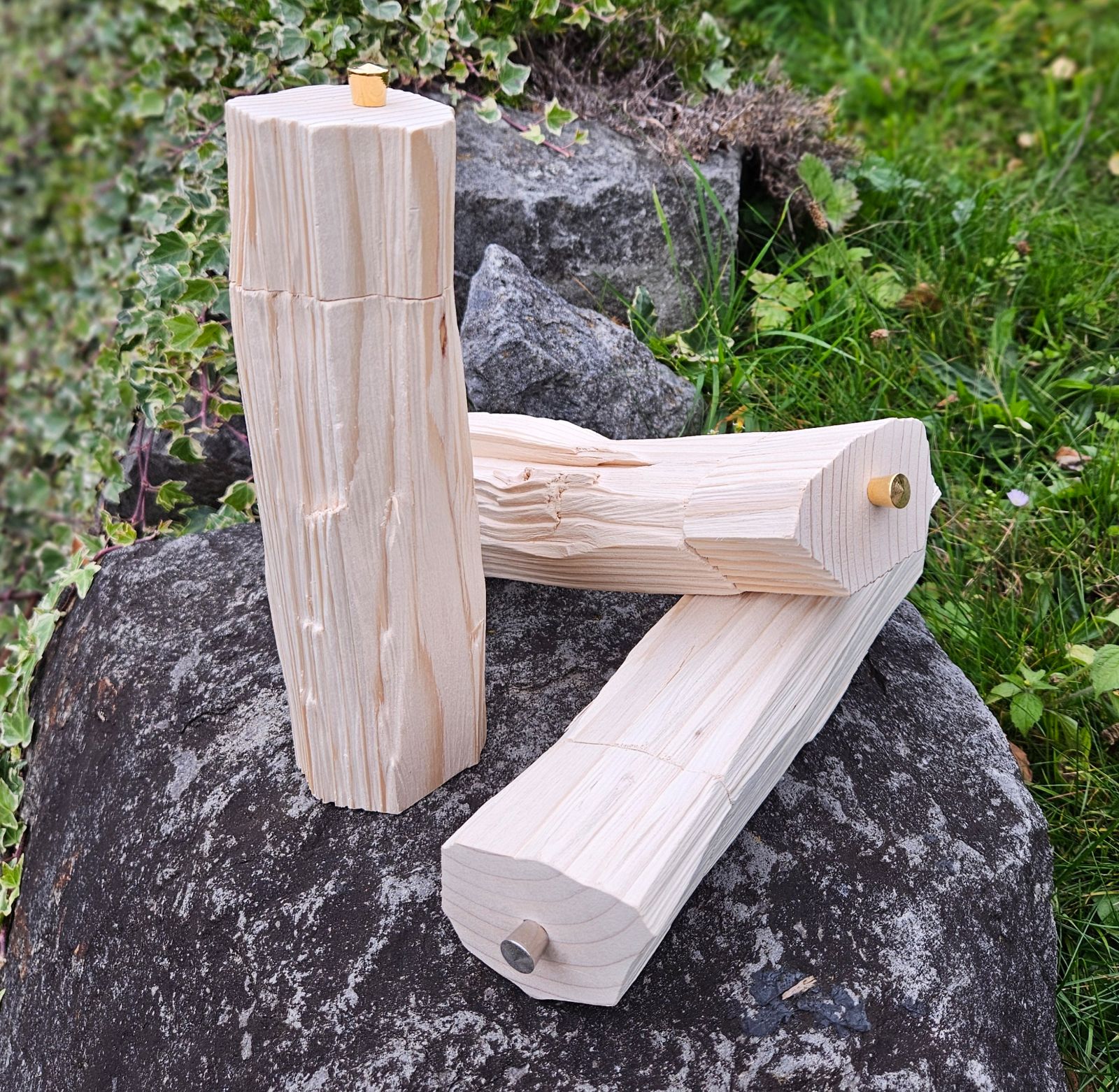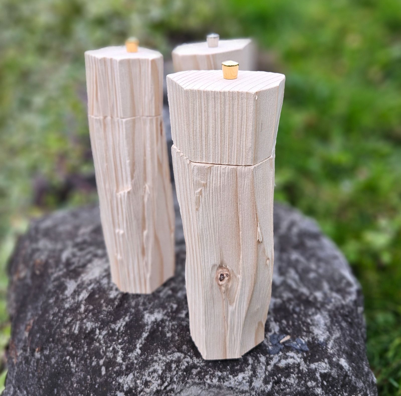 Die Pfeffermühle aus Schweizer Weisstanne ist ein echter Hingucker auf dem Küchentisch! Jede Mühle wird von Hand auf ihre individuelle Form gespalten und erhält so ihr einzigartiges Aussehen. Jedes Stück ist ein Unikat und weicht deshalb optisch ein wenig vom Originalbild ab. Ausgestattet mit einem hochwertigen Edelstahlmahlwerk aus Schweizer Produktion. Kann für Salz und Pfefffer verwendet werden.