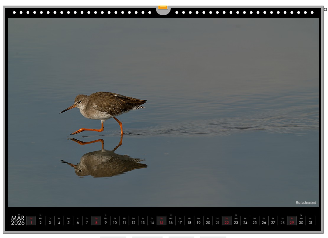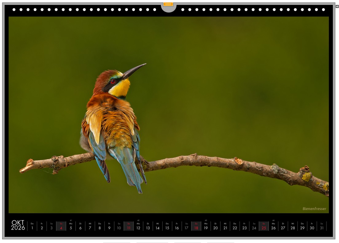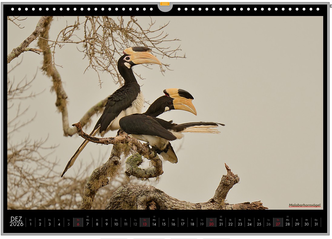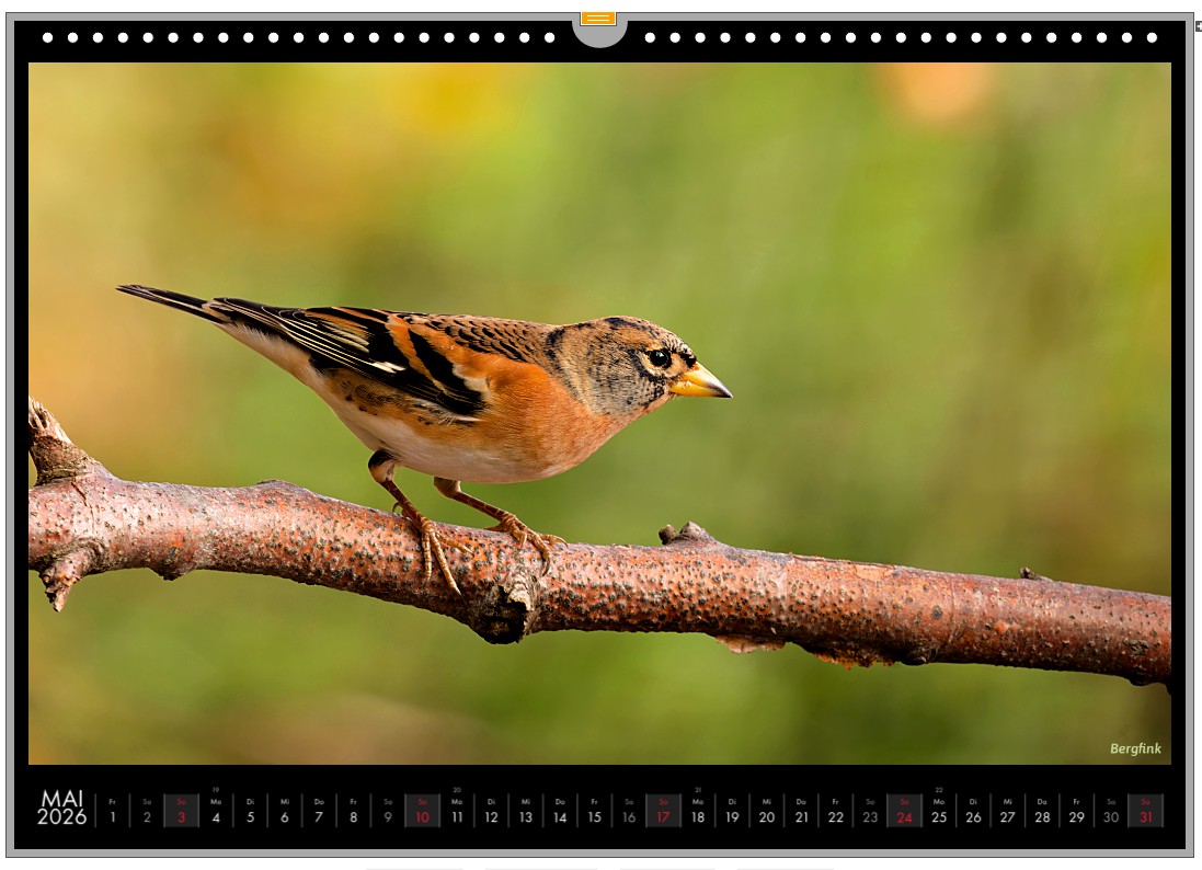 Der Vogel Wandkalender für das kommende Jahr 2026. Für alle Natur- und Vogelliebhaber.