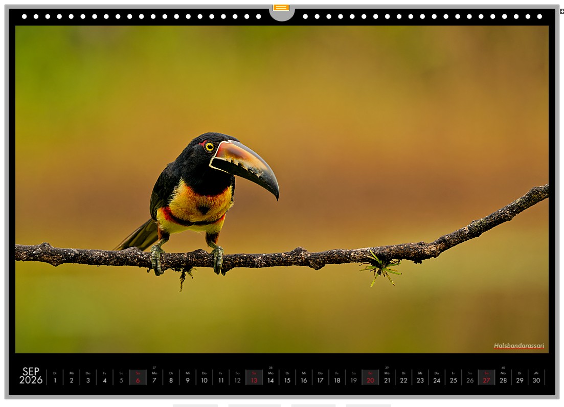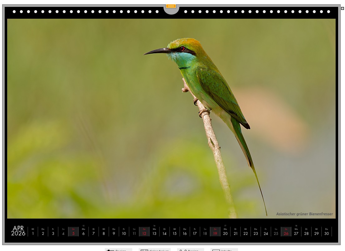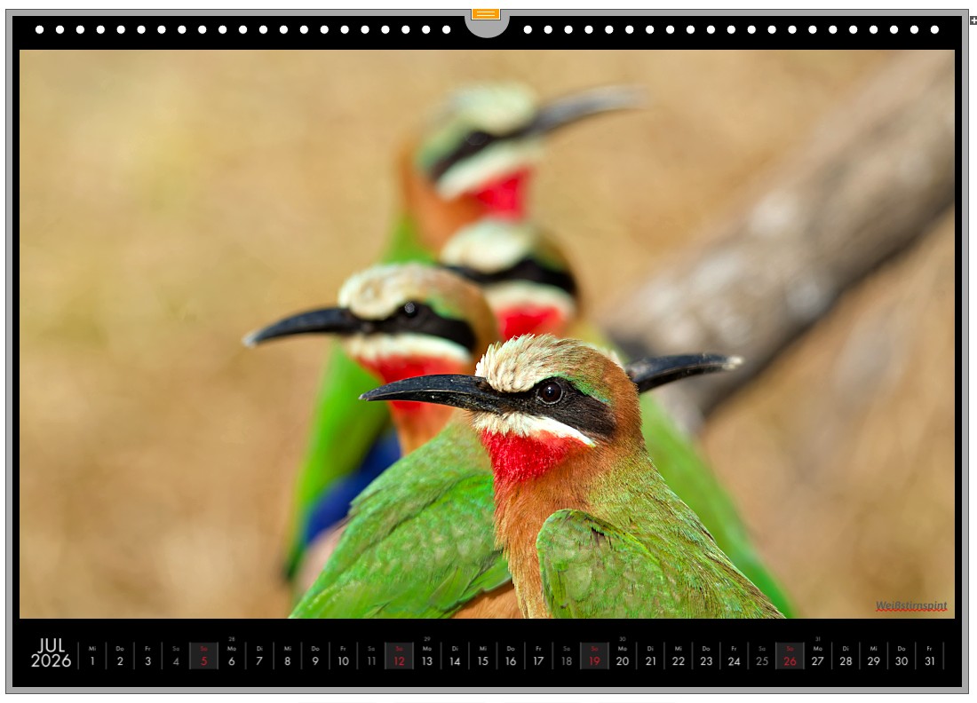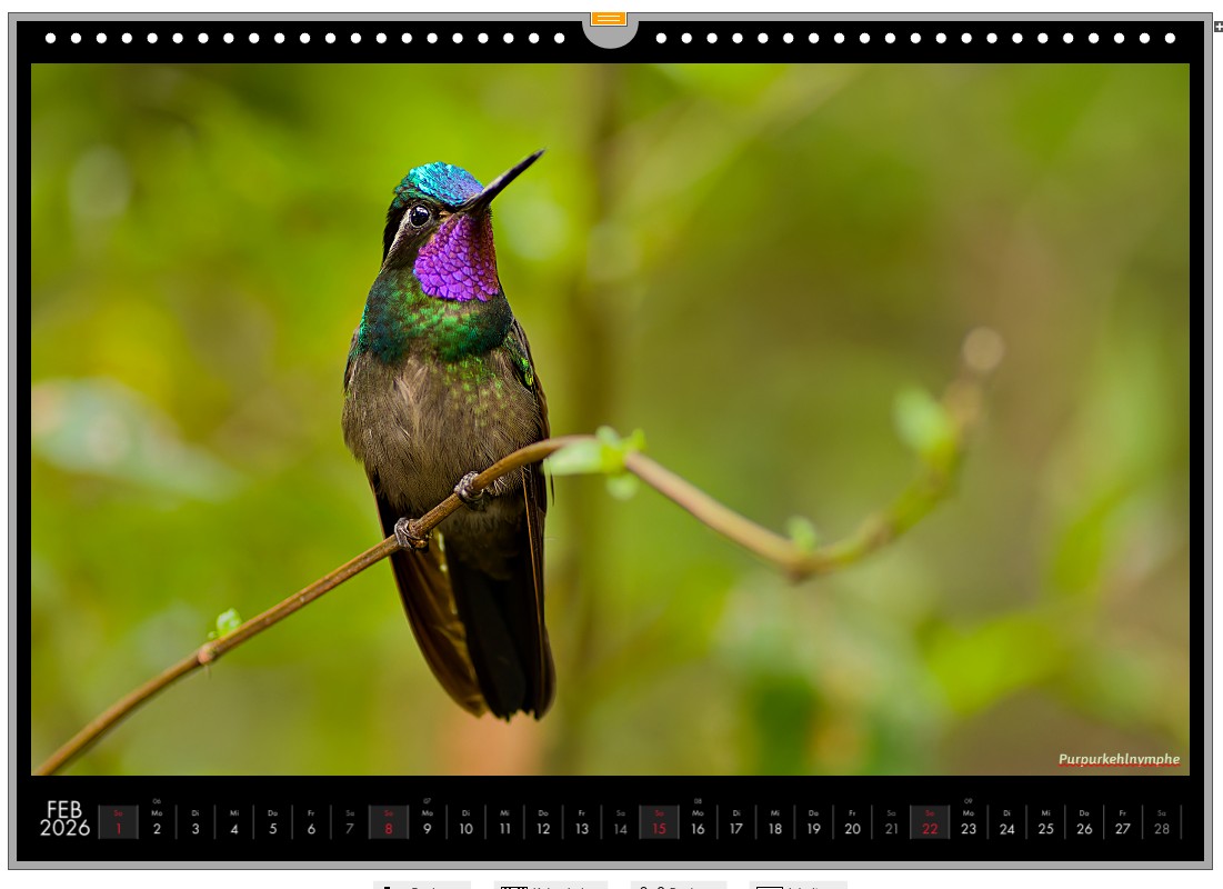 Der Vogel Wandkalender für das kommende Jahr 2026. Für alle Natur- und Vogelliebhaber.